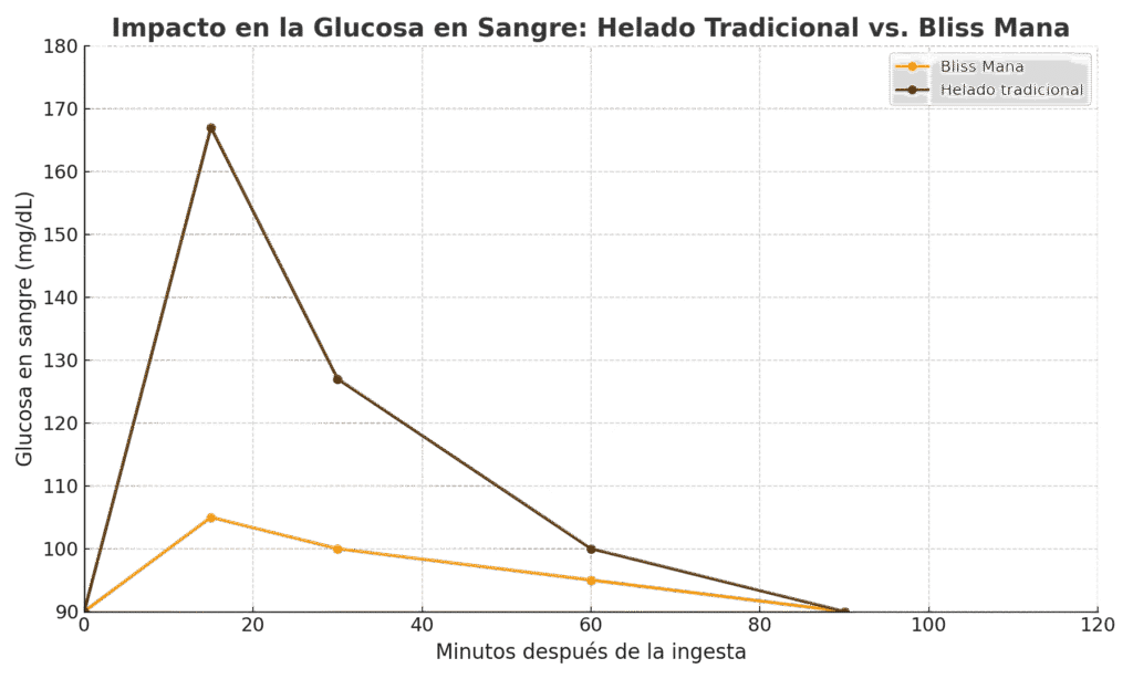 Bajo índice glucémico (pocos azúcares añadidos): Uno de nuestros principios fundamentales es reducir al máximo el azúcar libre en nuestras recetas. El índice glucémico mide cómo un alimento impacta la glucosa sanguínea; los productos BlissMana están formulados para causar una elevación mínima y sostenida, evitando subidas bruscas. Esto lo logramos endulzando con alternativas naturales y extractos sin azúcar añadido, y utilizando carbohidratos de absorción lenta. ¿Por qué tanto énfasis en controlar el azúcar? Porque una ingesta elevada de azúcares rápidos está directamente ligada a la disfunción metabólica. Las dietas con exceso de azúcar contribuyen a la obesidad y aumentan el riesgo de desarrollar diabetes y otras ENTwho.int. Al mantener nuestros postres y alimentos bajos en carga glucémica, ayudamos a mantener estables tus niveles de glucosa e insulina. Esto no solo beneficia a personas con diabetes o prediabetes, sino a cualquiera que busque tener energía constante y evitar los temidos “picos y valles” de azúcar que causan cansancio y hambre poco después de comer dulces convencionales.